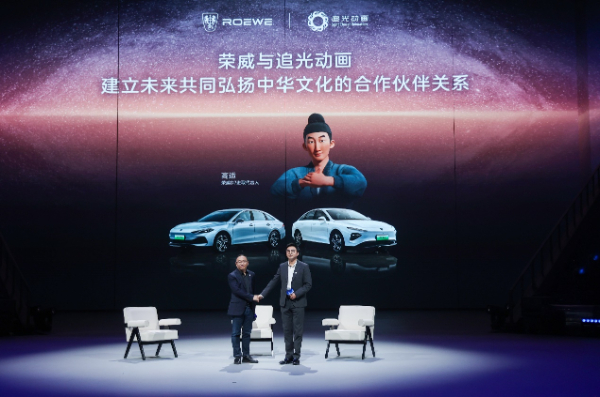 發(fā)布會上,今年大熱的動畫電影《長安三萬里》中的人物“高適”與榮威D7的跨界合作迅速形成話題并出圈?!堕L安三萬里》是追光動畫十年成長探索和創(chuàng)新突破的一部里程碑式的作品,而榮威“D家族”是基于過去十年上汽榮威在新能源科技上的持續(xù)投入和創(chuàng)新迭代打造的新序列,雙方強(qiáng)強(qiáng)聯(lián)合,溯其根源,始于“進(jìn)取”這一精神內(nèi)核。