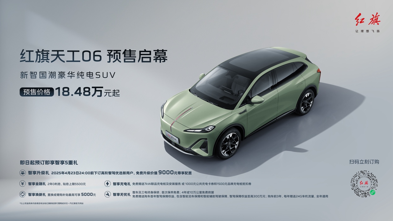 天工06定位新智國潮豪華純電SUV,除搭載了與天工05相同的司南智駕系統(tǒng)和靈犀座艙外,還配備了專屬超級(jí)適時(shí)智能四驅(qū)系統(tǒng),擁有毫秒級(jí)的四驅(qū)介入響應(yīng),既可為用戶提供卓越的四驅(qū)駕乘體驗(yàn),又能讓用戶享受兩驅(qū)的極低電耗。此次紅旗品牌智能體驗(yàn)日天工06正式開啟預(yù)售,預(yù)售價(jià)格18.48萬元起,并帶來豐厚的“智享五重禮”預(yù)訂權(quán)益。
