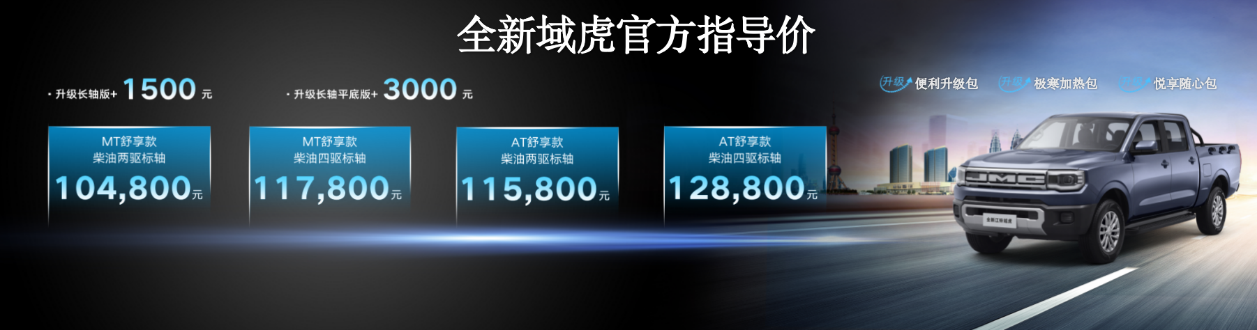 全新江鈴域虎最低起售價(jià)低至10.48萬元,并推出四重豪禮購車福利。