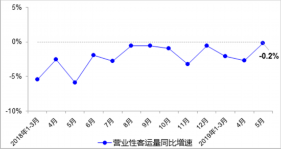 1-5月,完成營業(yè)性客運量73.3億人,同比下降1.8%。其中,公路營業(yè)性客運量下降4.9%,高速公路7座及以下小客車流量增長8.0%;水路客運量下降1.7%。