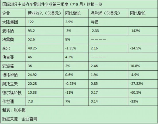 三季度財(cái)報(bào)發(fā)布 多家跨國零部件巨頭艱難度日