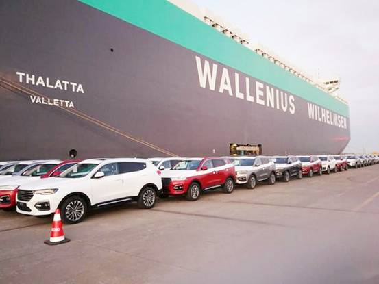 等待裝船出口的國產汽車