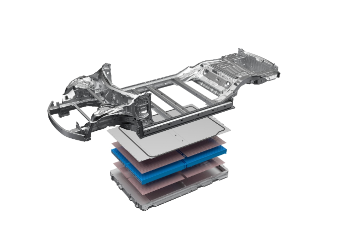 CTB技術(shù)以“電池車身一體化”為核心設(shè)計(jì)理念,并且在“蜂窩”中找到靈感,結(jié)合刀片電池獨(dú)有的長(zhǎng)方體結(jié)構(gòu)和超級(jí)強(qiáng)度,衍生出“類蜂窩鋁”結(jié)構(gòu),帶來電池成組技術(shù)里程碑式的革新,通過將刀片電池包與車身剛性連接,二為一形成完整體,將地板(電芯上蓋)-電芯-托盤三者與車身集成,形成高強(qiáng)度的“整車三明治”結(jié)構(gòu)。