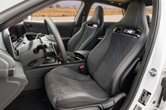 內(nèi)飾部分,伊蘭特N依舊保留了現(xiàn)代家族的雙聯(lián)屏布局,中控臺(tái)采用大面積皮革包袱。為進(jìn)一步突出運(yùn)動(dòng)屬性,新車的方向盤、門飾板以及座椅等處,還加入了翻毛皮材質(zhì)。