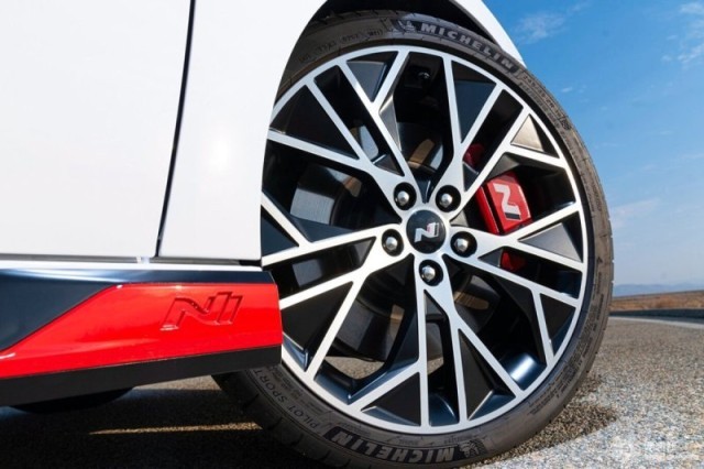 細(xì)節(jié)方面,伊蘭特N配備了規(guī)格為245/35 R19的雙色輪圈。同時(shí),其制動(dòng)卡鉗、側(cè)裙邊以及前后包圍處還采用了紅色涂裝,進(jìn)一步突出了整車的運(yùn)動(dòng)氛圍。