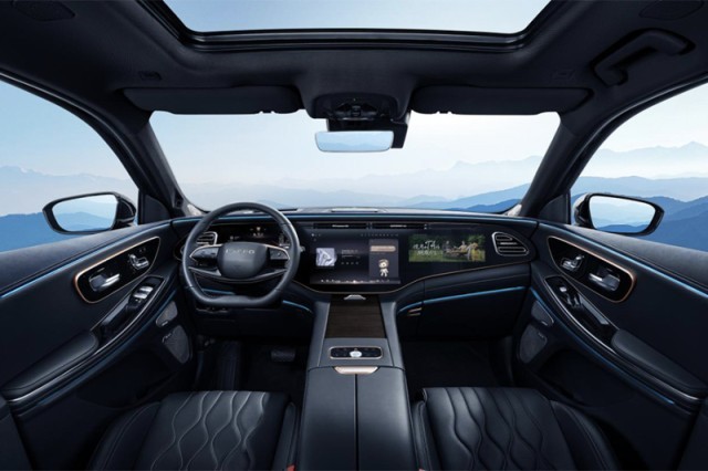 內(nèi)飾部分,星途攬月國際版采用全新環(huán)抱式豪華智慧座艙,配備一體融合式三聯(lián)屏系統(tǒng),全液晶儀表搭配大尺寸中控屏和副駕駛前方顯示屏科技感十足。另外,該車還內(nèi)置Lion 5.0雄獅生態(tài)系統(tǒng),支持全車智能語音交互、遠程APP車輛遙控、全新HMI人機交互等功能,并兼容華為HiCar和Apple Carplay等互聯(lián)功能。