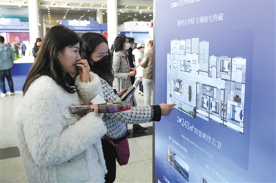 2月8日,購房者在2023齊魯(濟南)春季房地產(chǎn)展示交易會現(xiàn)場了解房屋信息。新華社記者 朱崢 攝