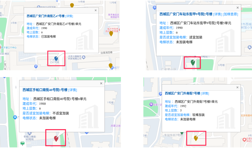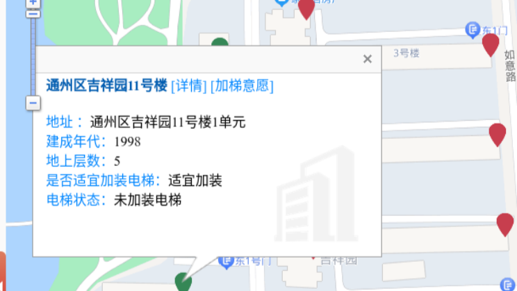 點擊地圖即可查看樓棟加梯的相關信息
