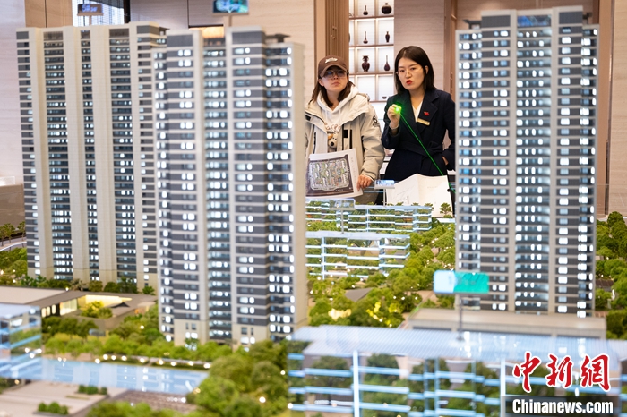 圖為2月28日,山西省太原市,置業(yè)顧問(wèn)在售樓部為市民推介商品住宅。 中新社記者 韋亮 攝