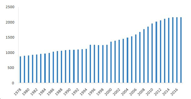 北京市1978-2017年常住人口(單位:萬人)