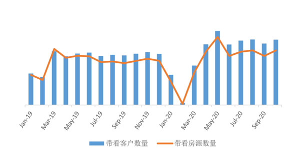 與去年同期相比,疫情延后需求釋放,今年10月二手房成交水平處在2017年以來(lái)月度較高位上,同比大幅增加46%。