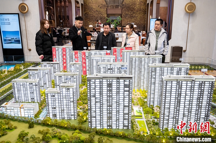 圖為3月7日,太原一家房地產(chǎn)公司新開樓盤吸引購房者關注。 中新社記者 韋亮 攝