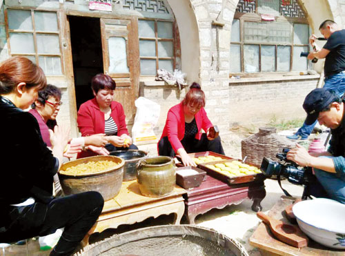 攝制組拍攝神池月餅制作過程
