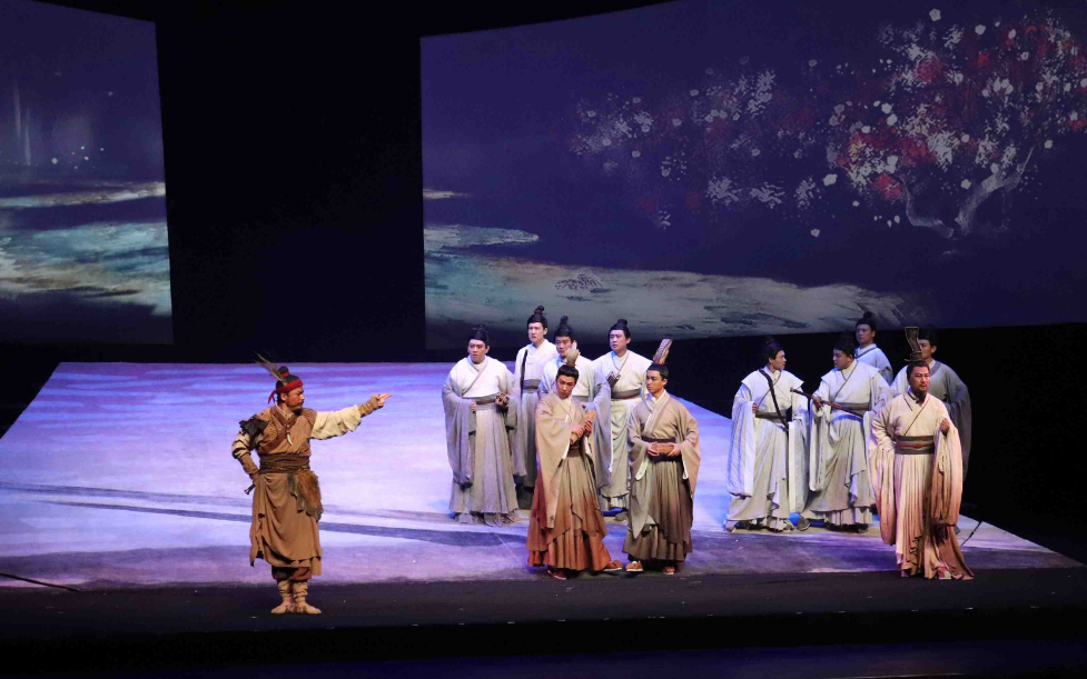 話劇《孔子》融合了音樂(lè)、舞蹈、詩(shī)歌、繪畫(huà)、戲曲、雕塑等藝術(shù)元素,以春秋末期諸侯爭(zhēng)霸為歷史背景,講述了孔子波瀾壯闊而又顛沛流離的一生,生動(dòng)塑造了歷經(jīng)磨難而初心不改的古代思想家、政治家、教育家形象。