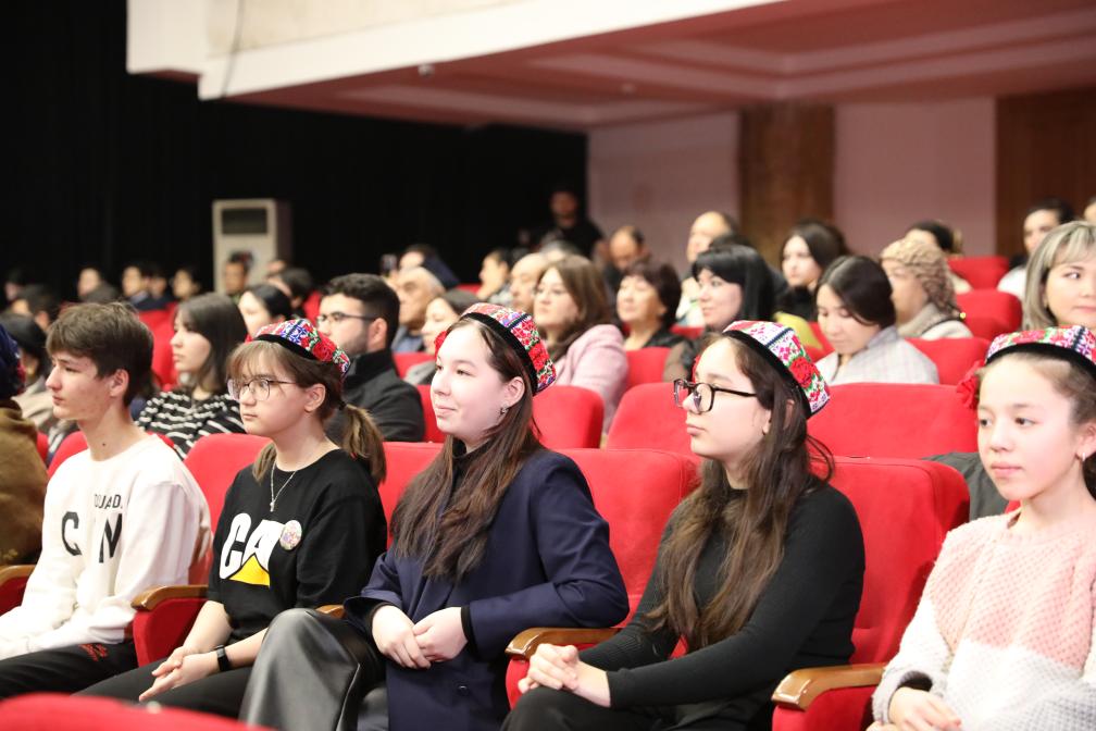 1月5日,觀眾在烏茲別克斯坦首都塔什干觀看電影《喀什古麗》首映式。新華社發(fā)(扎法爾攝)