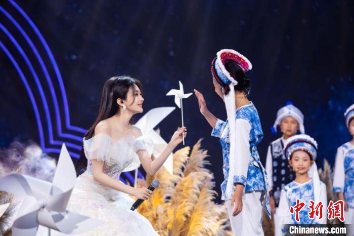 圖為陳冰攜手云南大理的小杜鵑合唱團(tuán)帶來白族民謠《風(fēng)也可溫柔》。主辦方 供圖