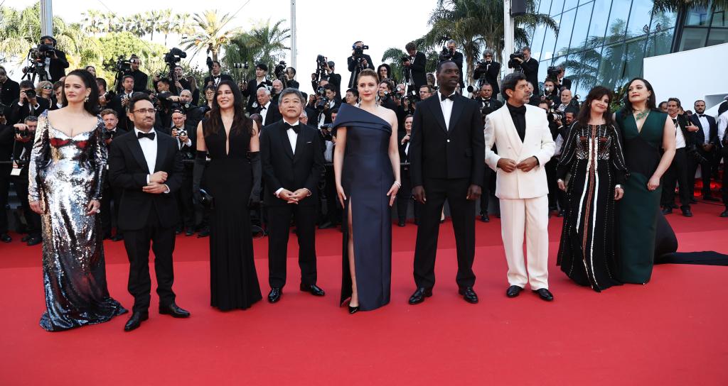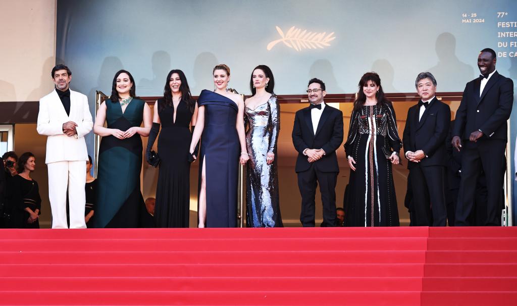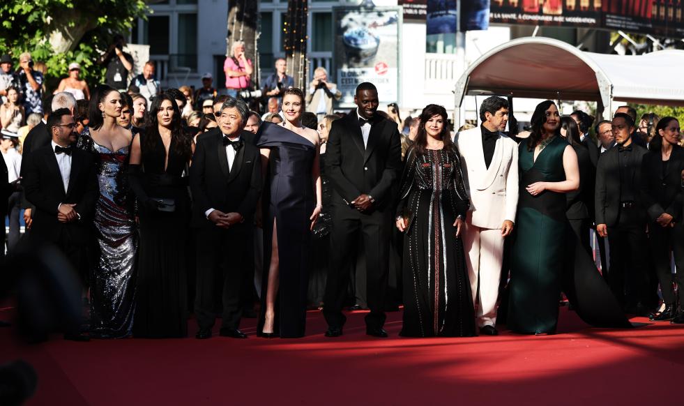 5月25日,在法國南部城市戛納舉行的第77屆戛納電影節(jié)上,主競賽單元評(píng)委抵達(dá)閉幕式紅毯。新華社記者 高靜 攝
