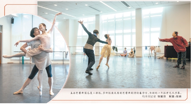 上海芭蕾舞團(tuán)已復(fù)工排練,多部經(jīng)典及原創(chuàng)芭蕾舞劇將輪番登臺(tái),為新的一年拉開藝術(shù)序幕。均本報(bào)記者 張挺 攝 制圖:張繼