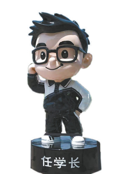 走進(jìn)北海公園南門,步行沒多遠(yuǎn),就能看見一個(gè)兩人高的公仔矗立湖邊。公仔底座上寫著“任學(xué)長(zhǎng)”,他戴著黑框眼鏡,弧形上翹的嘴型仿佛向游客笑著問好,沿著它背后的湖水碧波望去,遠(yuǎn)處就是北海的白塔,為寧?kù)o典雅的古典園林增添了一絲可愛氣息。