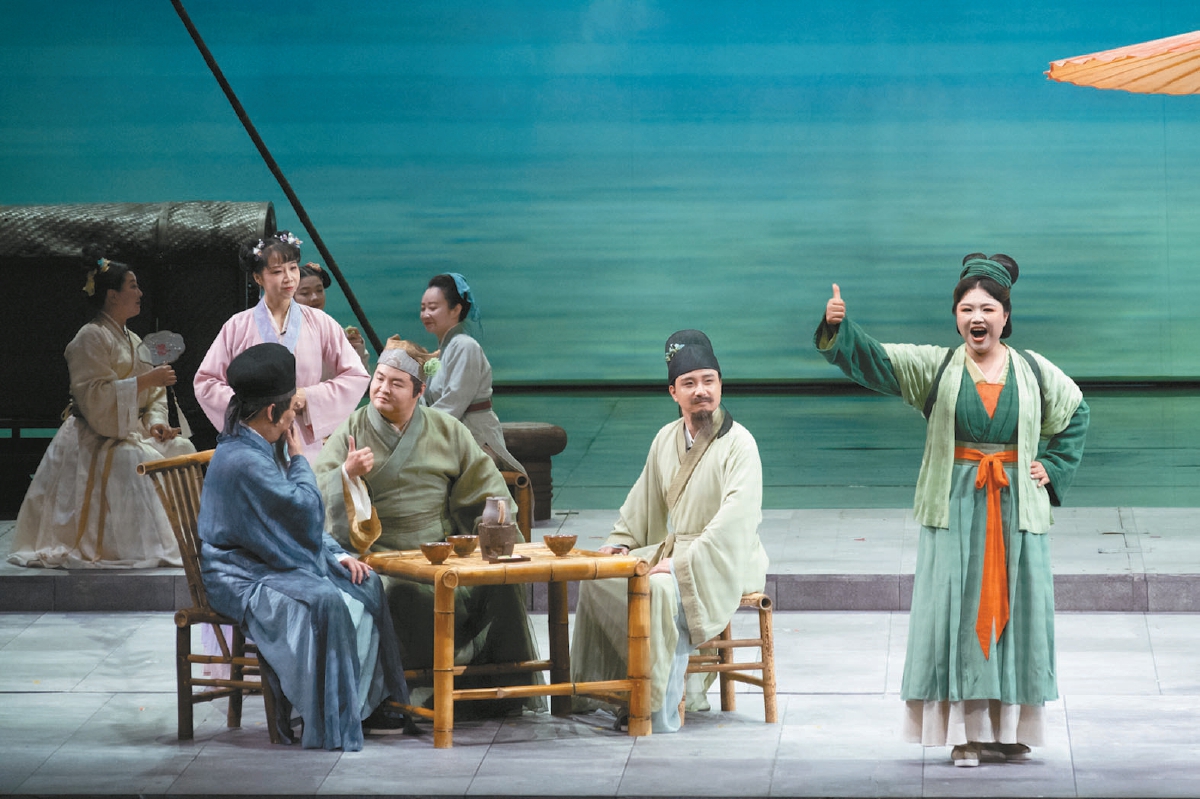 編劇曹路生借用清代李漁“立主腦、減頭緒、密針線”的創(chuàng)作理念大刀闊斧重構(gòu)敘事,刪減十余個(gè)支線人物,將敘事重心聚焦于趙盼兒、宋引章、孫三娘三位女性從錢(qián)塘到汴京的創(chuàng)業(yè)歷程。既延續(xù)關(guān)漢卿元雜劇《趙盼兒風(fēng)月救風(fēng)塵》的精神內(nèi)核,又汲取電視劇對(duì)女性情誼的現(xiàn)代詮釋,通過(guò)歌劇獨(dú)有的抒情性與戲劇張力,展現(xiàn)了中國(guó)女性“自尊、自愛(ài)、自立、自強(qiáng)”的精神內(nèi)核。導(dǎo)演蔣維國(guó)以“宋式美學(xué)的歌劇化重構(gòu)”為核心,巧妙調(diào)度舞臺(tái),演員舉手投足間皆融入宋畫(huà)的“日常優(yōu)雅”,將影視IP的動(dòng)人故事升華為具有普適價(jià)值的歌劇藝術(shù)表達(dá)。