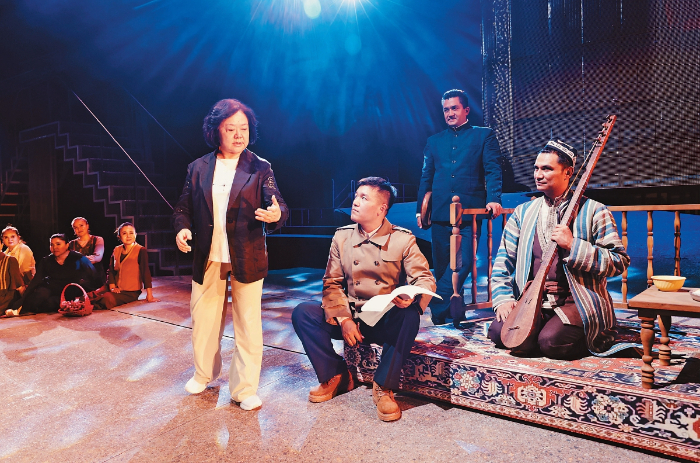 無(wú)論是《漢口茶港》中茶商抗日的英雄氣概,《奧涅金》中對(duì)真摯愛(ài)情的永恒追求,還是《原野》中對(duì)人性復(fù)雜性的深刻揭示,她的作品總能在具體故事中提煉出超越時(shí)代的價(jià)值。而對(duì)于《木卡姆戀歌——萬(wàn)桐書(shū)》,她更看重作品在鑄牢中華民族共同體意識(shí)方面的現(xiàn)實(shí)意義,“無(wú)論從當(dāng)年萬(wàn)桐書(shū)先生到新疆搶救木卡姆,還是我們劇組本身,我的執(zhí)行導(dǎo)演是維吾爾族,演員隊(duì)伍也是多民族的,整個(gè)劇組就是一個(gè)大家庭?!?/p>