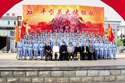 《平型關(guān)大捷組歌》演職人員合影,前排右二為崔樹珍。