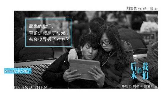 作為劉若英的電影導(dǎo)演處女作,同時“優(yōu)質(zhì)青年演員”井柏然和“金馬影后”周冬雨的傾情加盟,讓電影《后來的我們》未上映就備受關(guān)注。故事圍繞井柏然、周冬雨兩主人公在幾次春運過年回家期間發(fā)生的邂逅與愛情周折,體現(xiàn)出如今大都市漂泊奮斗的年輕人的情感和遭遇。電影目前已經(jīng)進(jìn)入后制階段,并宣布定檔4月28日,進(jìn)入五一檔。