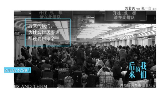 此次系列海報以紀(jì)實風(fēng)格的黑白圖片,搭配著“為什么只有過年,才想到回家?〞,“為什么討厭春運,卻還要回家?”等令人深思的質(zhì)問文案,在導(dǎo)演劉若英與監(jiān)制張一白聯(lián)手發(fā)力下,不僅讓井柏然周冬雨置身真實春運場景,成為了千千萬萬普通回家人群中的一員,同時也讓普通人成為了此次系列海報的主角。突顯出電影現(xiàn)實主義氣質(zhì)。正值春節(jié)將至,春運高峰,人們紛紛踏上回家的路的時刻,電影《后來的我們》系列海報更是觸及正在趕路的觀眾內(nèi)心深處關(guān)于春運的隱痛和感動。