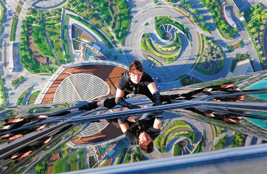 《碟中諜4》里,阿湯哥將自己“蜘蛛人”的愛好發(fā)揮到一個新高點。該片最大“名場面”便是阿湯哥徒手攀登迪拜塔,最后他還悠哉游哉地在迪拜塔頂拍了張“到此一游”照。