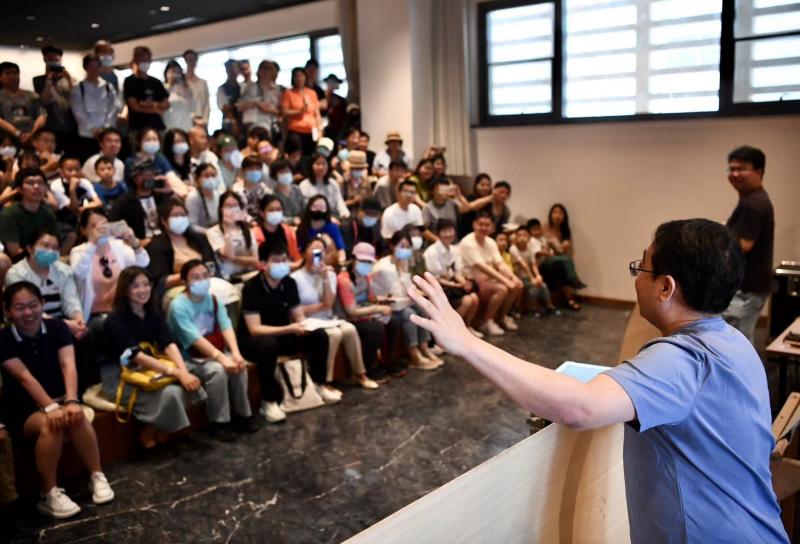 一樣樣示范后,鄭晨還和觀眾分享了一個自己的經(jīng)歷,“2005年復(fù)排《嘩變》,接到任務(wù)后我們正好赴美國演出《茶館》,于是我便帶上了《嘩變》的劇本想得空時熟悉下。那個戲其實(shí)給音效的空間并不大,只有汽笛聲、海鷗聲和軍歌。那次美國演出我們?nèi)チ伺f金山,巧合的是,在金門大橋下剛好是美國海軍基地太平洋艦隊司令部的舊址,正是《嘩變》劇本里劇情的發(fā)生地。于是我就在那里錄了當(dāng)時的環(huán)境音,海鷗以及海浪的聲音,聽著汽笛聲,感覺瞬時就穿越了?!爆F(xiàn)場,他為觀眾播放了自己當(dāng)時錄下的海鷗聲,而這個故事,鄭晨想傳遞給觀眾的是,音效作為話劇的一部分,每一部作品都希望聲音能與戲合拍,從中也能看到戲劇從業(yè)者的用心。