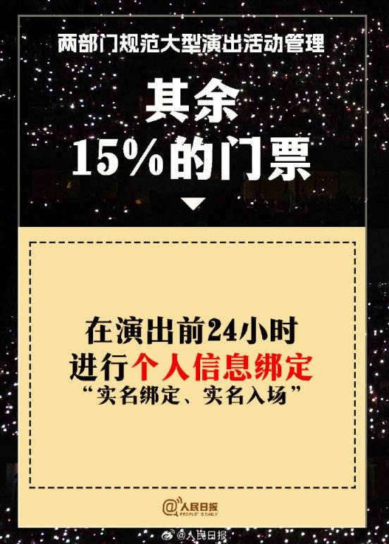 ?兩部門通知:①實(shí)名購票、實(shí)名入場。5000人以上演唱會(huì)購票人和入場人必須一致;②大型演出要設(shè)定梯次退票標(biāo)準(zhǔn);③公開銷售門票不低于核準(zhǔn)觀眾數(shù)量的85%;④嚴(yán)禁假唱、假演奏。更多↓↓↓詳戳,周知!