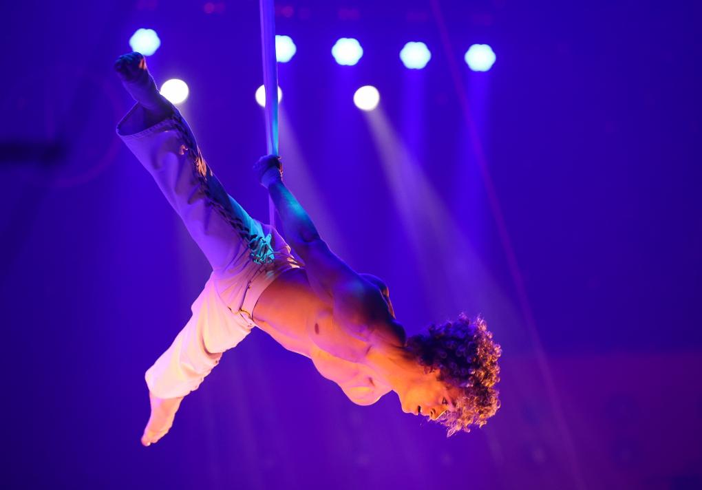 烏克蘭女演員表演吊環(huán)節(jié)目(11月5日攝)。新華社記者 劉大偉 攝