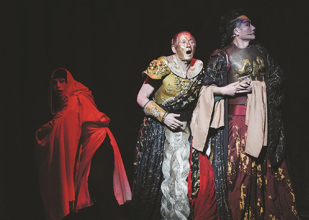 為了京昆新歌劇《凱撒》的上海演出,當(dāng)代傳奇劇場(chǎng)藝術(shù)總監(jiān)、著名演員吳興國(guó)提前一周抵滬,與“昆曲王子”張軍一起排練。今年2月,這部用京劇和昆曲演繹的莎士比亞名劇《凱撒大帝》在第52屆香港藝術(shù)節(jié)完成世界首演。作為2024上?!れo安現(xiàn)代戲劇谷展演劇目,《凱撒》連日來在FANCL藝術(shù)中心熱演。這部由香港委約,滬臺(tái)兩地創(chuàng)作者精誠(chéng)合作的作品,憑借東西方文化、戲曲與音樂的熱烈碰撞、大膽探索、凌厲呈現(xiàn)引發(fā)申城觀眾矚目。