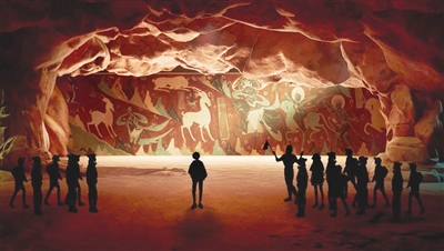 為了創(chuàng)作好這部作品,五年間丑菁琇多次前往敦煌采風(fēng),精美的壁畫成為她的靈感源泉:“敦煌藝術(shù)的美,令人驚嘆。每次講解員都用很輕的聲音講解,用微弱的手電筒的光來(lái)照亮窟內(nèi)的壁畫作品。這樣不僅是對(duì)壁畫的保護(hù),也是怕打擾了這沉睡千年的藝術(shù)作品。我希望敦煌壁畫這樣的藝術(shù)瑰寶,不僅在甘肅莫高窟可以看到,更希望能將它搬上舞臺(tái),讓更多的青少年兒童看到活態(tài)傳承的藝術(shù)作品。這個(gè)作品創(chuàng)作歷時(shí)五年,文稿修改了十幾稿,三十三位專家從不同領(lǐng)域?yàn)閯”窘o出建議。在搬上舞臺(tái)的二度創(chuàng)作中我們又修改了十幾稿,甚至在每一次演出的時(shí)候,我們都還在反復(fù)推敲、精心打磨,就是為了不斷完善這部作品?!?/p>