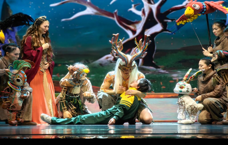 天津市兒童藝術(shù)劇團團長宋永順介紹,《敦煌·九色鹿王》是用XR數(shù)字科技替代傳統(tǒng)舞臺實景的戲劇,也是推動中華優(yōu)秀傳統(tǒng)文化創(chuàng)造性轉(zhuǎn)化創(chuàng)新性發(fā)展的藝術(shù)實踐。該劇秉承讓文物說話、讓歷史說話的創(chuàng)作理念,希望通過戲劇、木偶、音樂、歌舞、數(shù)字技術(shù)、AI人工智能等多元化技術(shù)和藝術(shù)手段,幫助廣大少年兒童更好認識和認同中華文明。