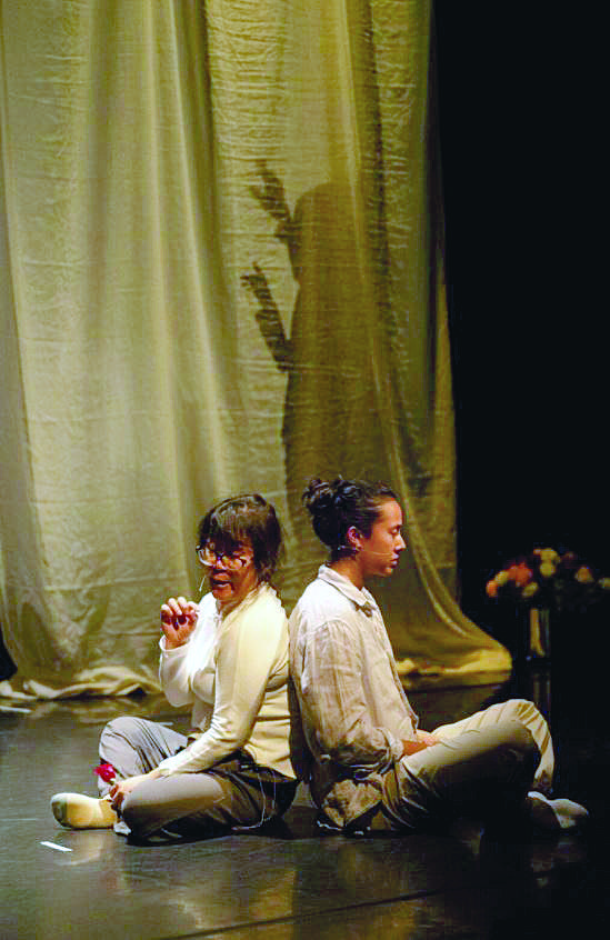 法魯克和余秀華合作詩歌舞蹈劇場作品《萬噸月色》,試圖把詩里的“陰影”意象轉化成某種新鮮的舞臺象征——讓詩人在光與暗交錯的空間里跳舞,在不同尺寸的“陰影”下舞蹈,表達不同生命階段對“陰影”的感受。(均受訪者供圖)