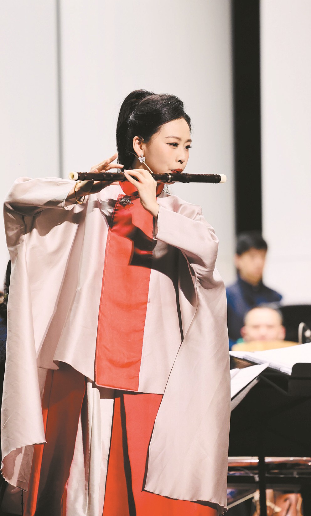29歲的笛簫演奏家王澤上演李博禪作曲的《云水三章》。這首誕生于2023年的新作分為“向天邊的云”“向水中的葉”“向遠(yuǎn)方的人”三部分,展現(xiàn)了曲笛、梆笛、新笛和簫的不同技巧和音樂特色,表達(dá)不同的人生意境。28歲的高雅演奏的是郭文景作曲的《愁空山》,這部作品被譽為竹笛界“最具演奏難度的曲目之一”。高雅迎難而上,不僅傳達(dá)了作品雄渾、厚重的精神內(nèi)核,又呈現(xiàn)出細(xì)膩感和層次感。