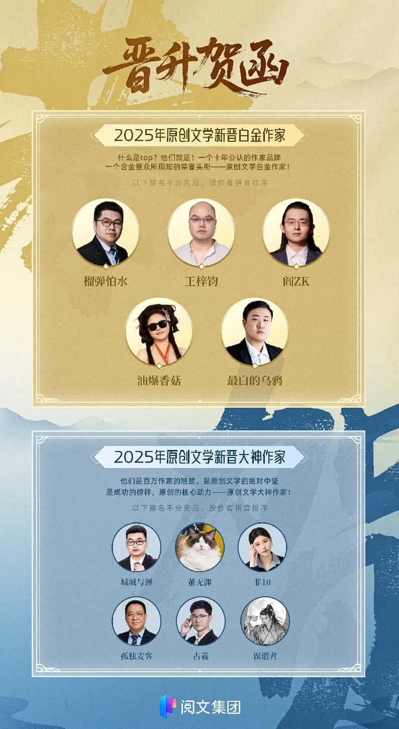 2025年閱文“白金大神”作家名單出爐:新人崛起,創(chuàng)作深度顯著增強(qiáng)