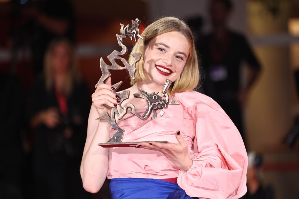 9月6日,在意大利威尼斯,最佳新演員獎(jiǎng)獲得者、電影《寂靜的朋友》演員盧娜·韋德勒與獎(jiǎng)杯合影。新華社記者 李京 攝