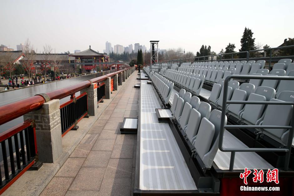 2月18日,在大雁塔音樂噴泉廣場南側(cè)高臺,臨近噴泉處皆被護欄圍起并禁止行人進入,護欄內(nèi)擺放了300余個座位,費用為30元每人。據(jù)了解,大雁塔音樂噴泉自2003年建成后,免費向游客開放,每年吸引大量游人。