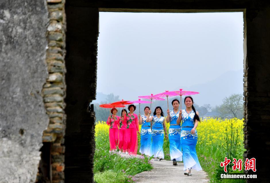 3月20日,江西省德興市??阪?zhèn)杜村婦女在田間花海“走秀”。當(dāng)日,江西德興市海口鎮(zhèn)杜村一批家庭婦女以千畝油菜花海為舞臺(tái),展示自己的才藝形象,希望宣傳家鄉(xiāng)的自然生態(tài)與人文歷史,擴(kuò)大旅游知名度和影響力。德興市??阪?zhèn)杜村交通便利,自然風(fēng)光優(yōu)美,村內(nèi)有歷史古跡和名木古樹。 胡敦煌 攝