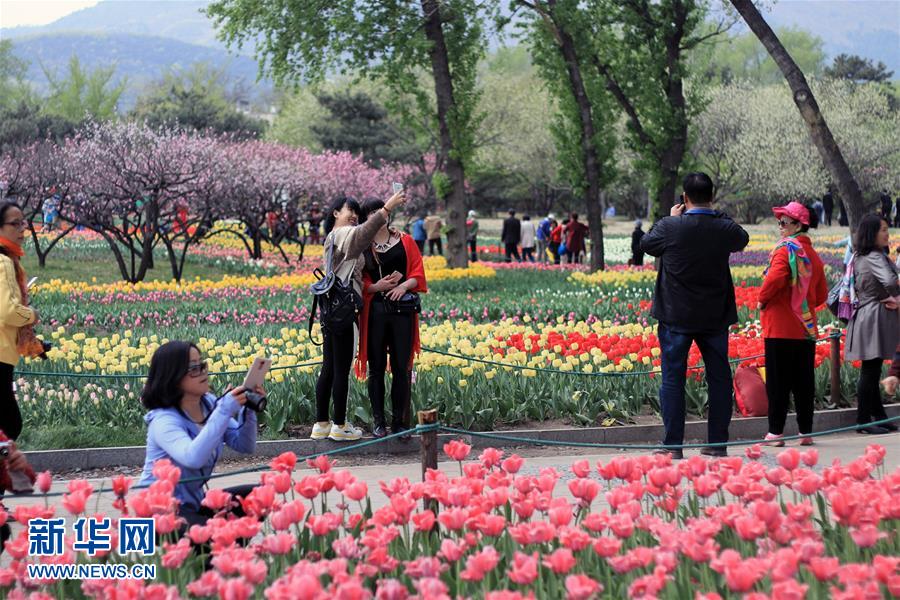 北京植物園內(nèi)盛開的郁金香花(4月11日攝)。近日,北京植物園內(nèi)的郁金香競相開放,吸引眾多游人前來觀賞。 新華社記者 李明放攝