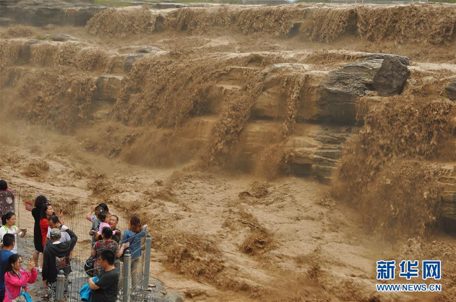 受上游強降雨影響,黃河壺口瀑布水勢大漲,主副瀑布連成一片。