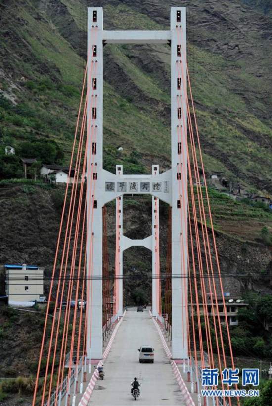 位于云南祿勸縣與四川會(huì)理縣交界處金沙江上的皎平渡大橋(2011年6月15日攝)。1935年5月,紅一方面軍在36名船工的幫助下,勝利渡過了金沙江,擺脫了國(guó)民黨軍隊(duì)的圍追堵截,取得了戰(zhàn)略轉(zhuǎn)移中具有決定意義的勝利。 “紅軍不怕遠(yuǎn)征難,萬水千山只等閑?!遍L(zhǎng)征譜寫了一曲人類征服自然的凱歌,峽谷激流、雪山草地、物資匱乏、生命禁區(qū),這一切都不能阻擋紅軍前進(jìn)的步伐。80年過去,滄海桑田,紅軍長(zhǎng)征走過的荒郊野嶺,如今樓宇林立,欣欣向榮;徒步翻越的大山、攻克的關(guān)隘、沼澤遍布的草地、泅渡的河流,修起了通暢快捷的公路和大橋……長(zhǎng)征之路發(fā)生了翻天覆地的變化,昔日的艱難險(xiǎn)阻正漸漸變成康莊通途。新華社記者藺以光攝