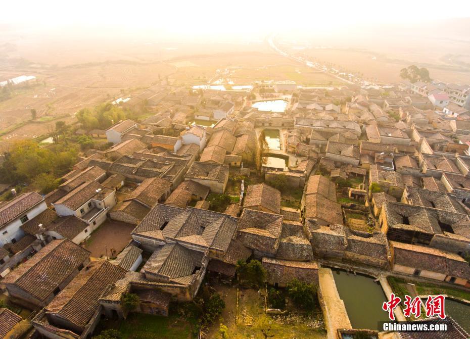 12月10日,航拍位于江西金溪縣有著600多年歷史的中國歷史文化名村、中國傳統(tǒng)村落竹橋古村,俯瞰全村,形似一柄巨扇。該村現(xiàn)保存有明代所建民居8幢,明代祠堂1幢,其余為清代建筑,青磚灰瓦,樸實素雅,為贛派建筑最典型的代表。村前溪水長流,良田萬頃,村后茂林修竹,鳥鳴樹幽,身歷其境,如入畫中。傅建斌 攝