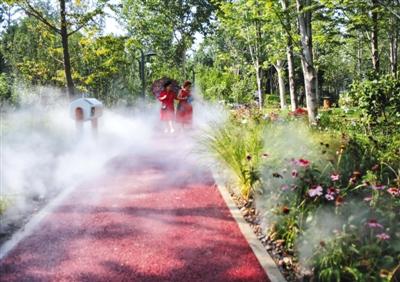 昨(3號)日,安德城市森林公園內設置多處噴霧裝置。記者 王貴彬 攝