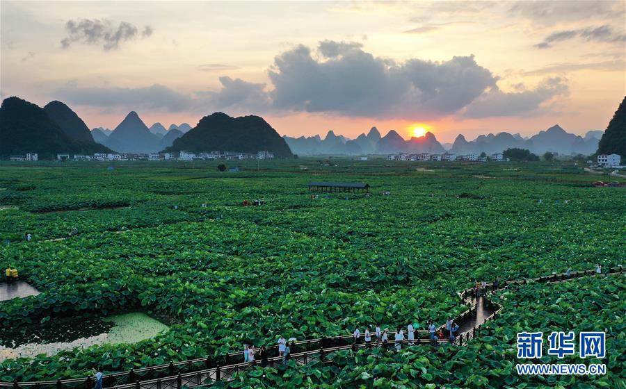 連日來,廣西柳州市柳江區(qū)百朋鎮(zhèn)萬畝荷塘種植的春季蓮藕喜獲豐收,各色荷花競相綻放,吸引游客前來賞玩。百朋鎮(zhèn)是柳州市柳江區(qū)雙季蓮藕的主產(chǎn)區(qū),雙季蓮藕種植面積達(dá)3.2萬畝。同時(shí),當(dāng)?shù)胤e極發(fā)展荷花景區(qū)生態(tài)旅游休閑項(xiàng)目,260多戶貧困戶通過蓮藕種植及旅游產(chǎn)業(yè)實(shí)現(xiàn)脫貧。
