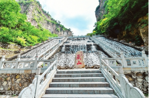 走進(jìn)藏山景區(qū),長長階梯順山勢而建,潺潺流水似有千年歷史流淌。