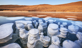 人民網(wǎng)訊 當(dāng)?shù)貢r(shí)間2020年11月25日,攝影師兼向?qū)tanislav Tolstnev拍攝到俄羅斯貝加爾湖“氣泡冰”奇景,夢(mèng)幻般的氣泡,呈現(xiàn)了一種奇異的美麗,讓人感嘆大自然的神奇。這些“冰泡”是由湖底植物釋放出的沼氣(甲烷)在上升過程中因極寒氣溫導(dǎo)致冰封速度過快,被“鎖”在冰層之中而形成的。