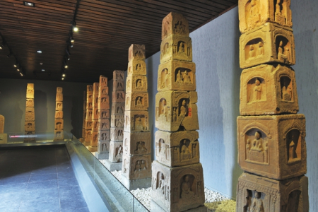 走進長治市博物館,仿佛進入了歷史的長廊,從創(chuàng)世之初、石之美者、塑土成陶、晶玉之瓷到吉金佳器,5個單元的館內陳列展覽盡顯了長治古老的文明。其中的“創(chuàng)世之初”主要反映早期人類在長治地區(qū)的生產生活痕跡。展品有義和、花坡兩處舊石器時代文化遺址和多處新石器時代文化遺址,表明了長治是中華文明的早期發(fā)祥地之一?!笆勒摺标惲械挠袷褡炼傻钠魑?,主要出土于西周、春秋、戰(zhàn)國墓葬中,種類豐富,精美非凡。多為祭祀、禮儀、裝飾、陳設用品,有極高的歷史價值和藝術價值。“塑土成陶”展陳的文物主要是陶器,從新石器時代遺址中出土的體現(xiàn)“龍山文化”特色的陶器,到商代、漢代,直至隋唐之際的陶器,時間跨度非常之大。種類涵蓋飲食器、貯藏器等生活實用器和專為殉葬而制作的各類明器。尤其是用作明器的三彩陶器,凡與死者在世生活有關的如建筑、家具、牲畜和人物等無不具備,包羅萬象,真實再現(xiàn)了當時各個階層人士的不同生活面貌?!熬в裰伞闭龟惖挠兴宕那啻善?、唐代的白瓷,以及宋、金、元代的瓷器。據介紹,珍藏的宋、金、元時期瓷器品種數(shù)量多,南、北窯系均有,主要以霍州窯和磁州窯系列為主,其中,長治的八義窯(磁州窯系)生產的紅綠彩瓷是我國北方地區(qū)較具特色的釉上彩瓷?!凹鸺哑鳌闭故镜膭t是青銅器,以商、周器物為主。長治出土的商代器物與二里崗、殷墟時期銅器風格一致,表明了晉式銅器的精美藝術造型和高超的工藝水平。
